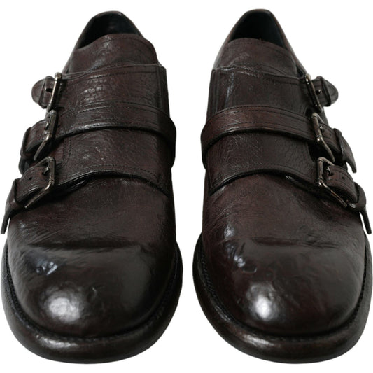Dolce & Gabbana Brown Leather Monk Strap Formal Derby Shoes