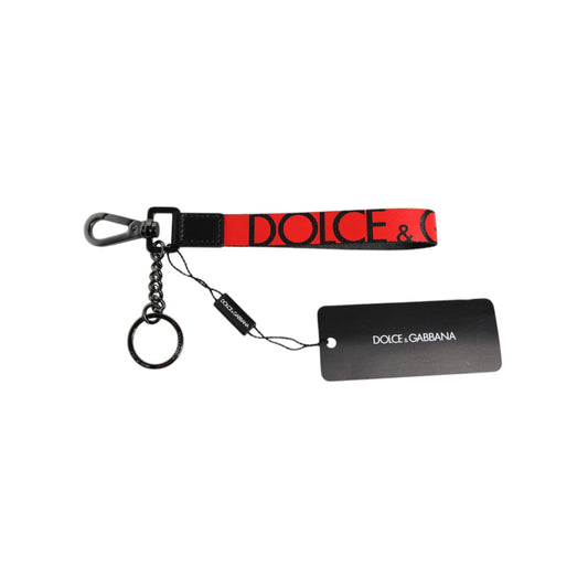 Dolce & Gabbana Red Logo Nylon Silver Brass Men Holder Keychain Keyring