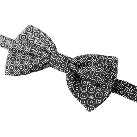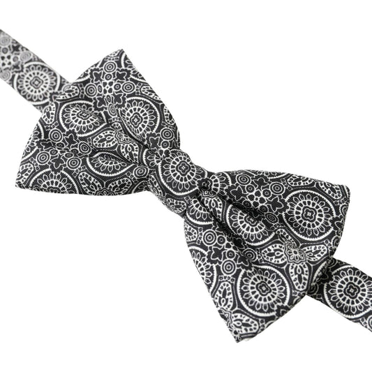 Dolce & Gabbana Black White Pattern Adjustable Neck Papillon Bow Tie