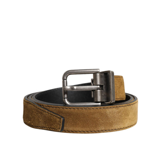 Dolce & Gabbana Brown Velvet Leather Logo Buckle Belt