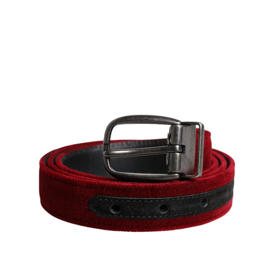 Dolce & Gabbana Red Velvet Black Metal Buckle Logo Belt