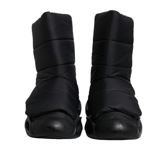 Dolce & Gabbana Black Leather Slip On Stretch Trekking Boots Shoes