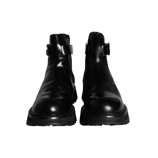 Dolce & Gabbana Black Leather Chelsea Mid Calf Men Boots Shoes