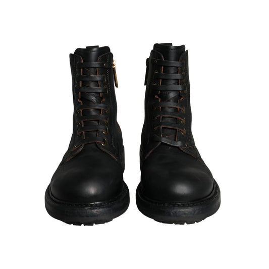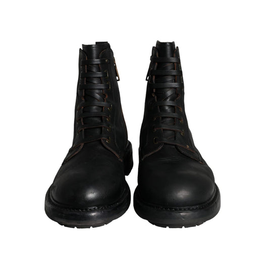 Dolce & Gabbana Black Leather Lace Up Mid Calf Boots Shoes
