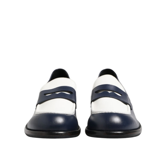 Dolce & Gabbana Black White Leather Slip On Loafers Men Dress Shoes