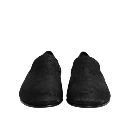 Dolce & Gabbana Black Floral Brocade Loafers Men Dress Shoes