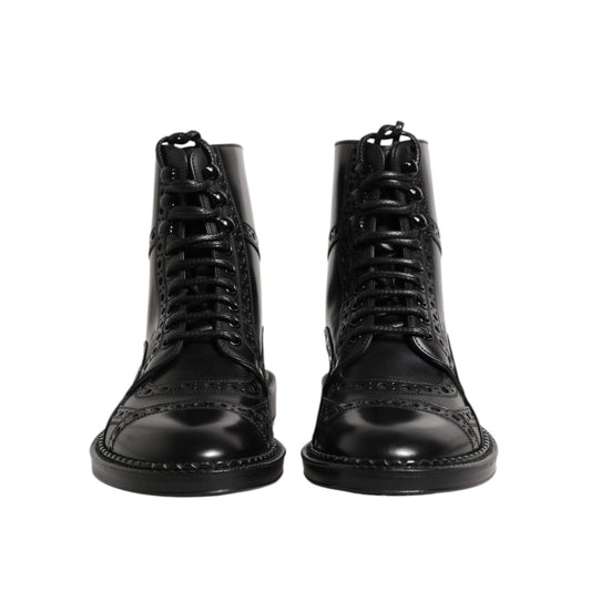Dolce & Gabbana Black Leather Lace Up Mid Calf Boots Shoes