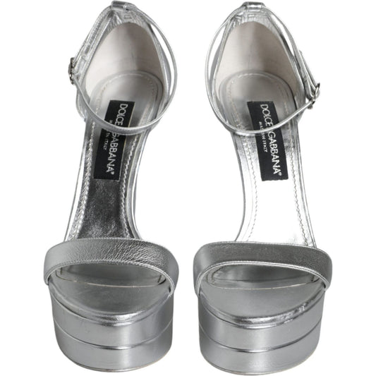 Dolce & Gabbana Silver Leather Platform Keira Sandals Shoes