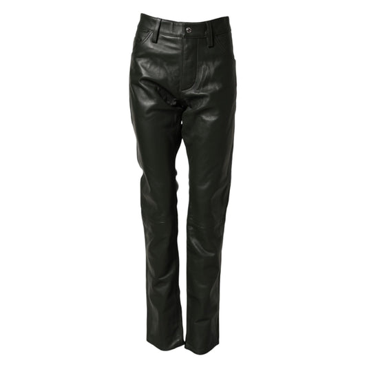 Dsquared² Black Full Grain Leather Mid Waist Trouser Pants