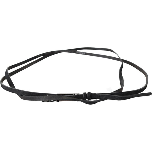 Costume National Black Maroon Skinny Leather Buckle Waist Belt