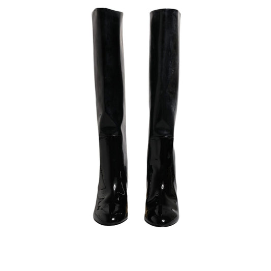 Dolce & Gabbana Black Patent Leather Vally High Boots Shoes