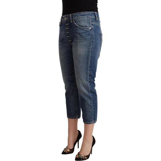 Twinset Blue Washed Cotton Cropped Capri Women Denim Jeans