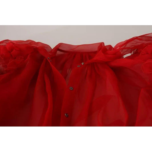 Dolce & Gabbana Red Silk Ascot Collar Ruffles Blouse Top