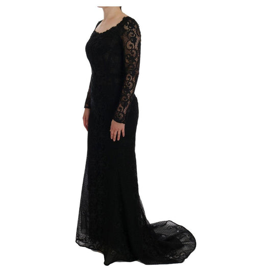 Dolce & Gabbana Black Yellow Crystal Lace Shift Dress