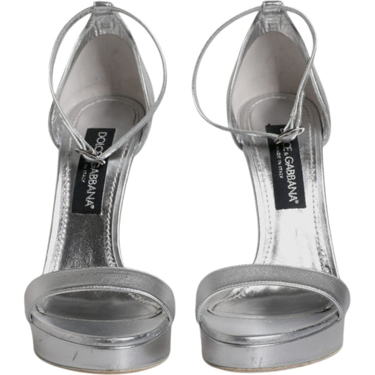 Dolce & Gabbana Silver Keira Leather Heels Sandals Shoes
