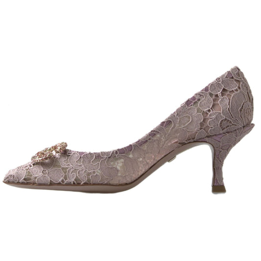 Dolce & Gabbana Pink Floral Lace DG Crystal Pumps Shoes