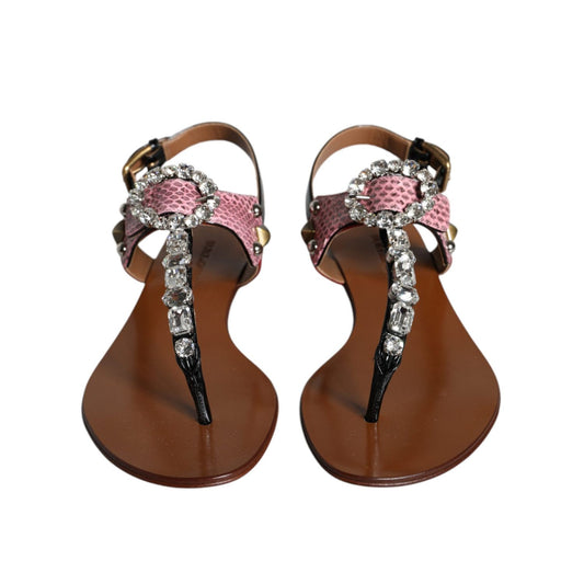 Dolce & Gabbana Pink Leather Crystal Heels Sandals Shoes