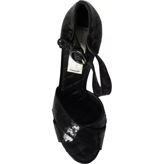 Dolce & Gabbana Black Sequin Ankle Strap Heels Sandals Shoes