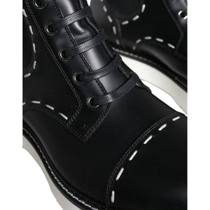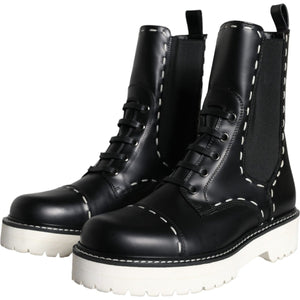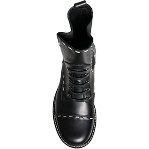 Dolce & Gabbana Black Leather Combat Mid Calf Boots Shoes