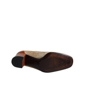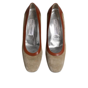 Dolce & Gabbana Beige Brown Leather Block Heels Pumps Shoes