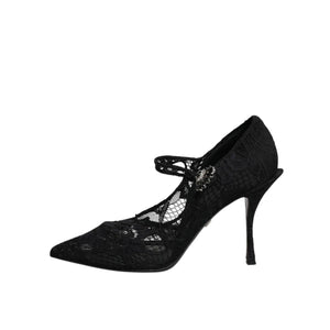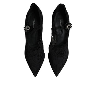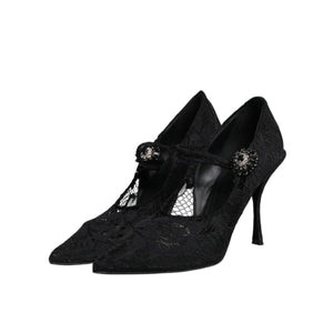 Dolce & Gabbana Black Lace Crystals Mary Jane Pumps Shoes