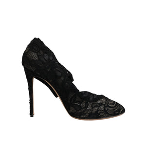 • Dolce & Gabbana Black Lace Stretch Heels Mid Calf Boots Shoes