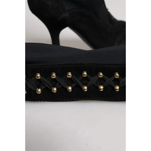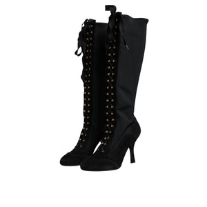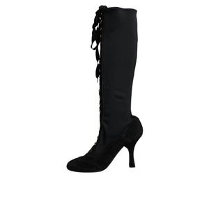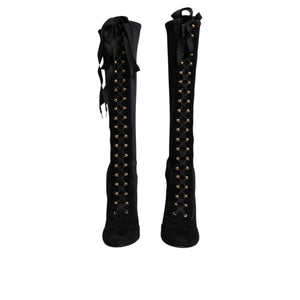 Dolce & Gabbana Black Lace Up Heels High Boots Shoes
