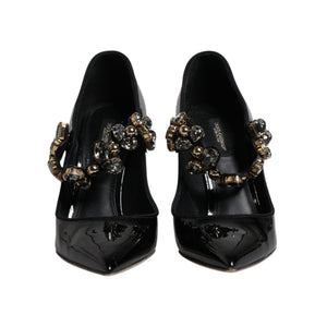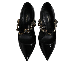 Dolce & Gabbana Black Leather Crystal Mary Jane Pumps Shoes