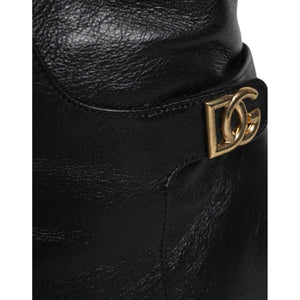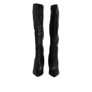 Dolce & Gabbana Black Leather Heels Knee High Boots Shoes
