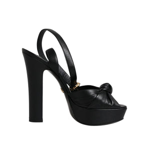 Dolce & Gabbana Black Leather Platform Heels Sandals Shoes