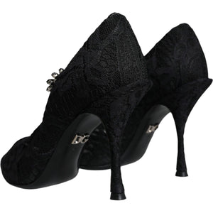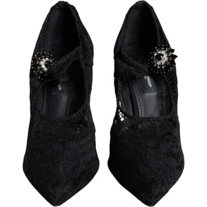 Dolce & Gabbana Black Mary Jane Pumps Lace Crystals Heels Shoes