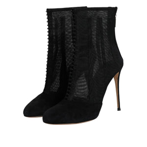 Dolce & Gabbana Black Mesh Stiletto Heels Ankle Boots Shoes