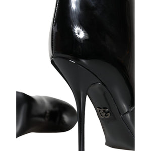 Dolce & Gabbana Black Patent Leather Mid Calf Boots Shoes