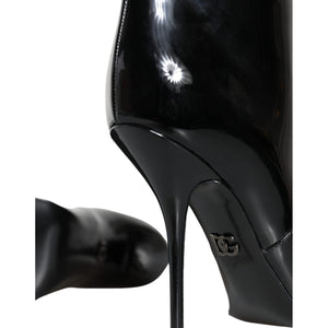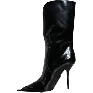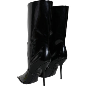 Dolce & Gabbana Black Patent Leather Mid Calf Boots Shoes
