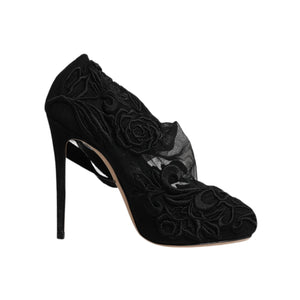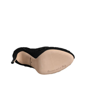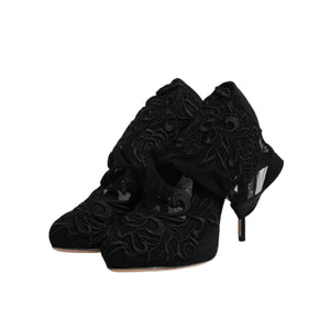 • Dolce & Gabbana Black Tulle Stretch Heels Mid Calf Boots Shoes