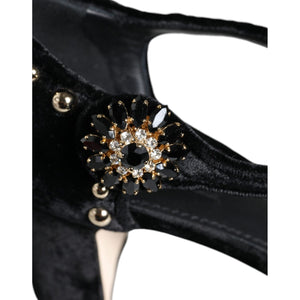Dolce & Gabbana Black Velvet Roses Ankle Strap Pumps Shoes