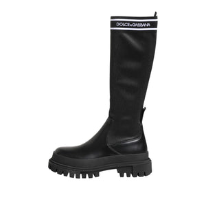 Dolce & Gabbana Black White Polyester Socks High Boots Shoes