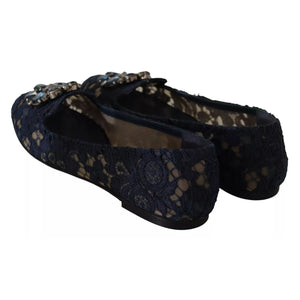 Dolce & Gabbana Blue Crystal Loafer Lace Ballet Flats Shoes