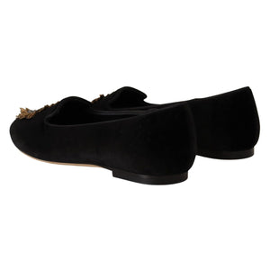 Dolce & Gabbana Black DG Sacred Heart Patch Slip On Flat Shoes