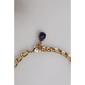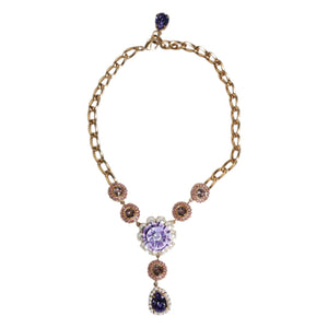 Dolce & Gabbana Gold Brass Floral Crystals Pearl Embellished Necklace