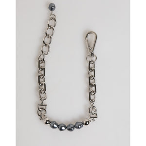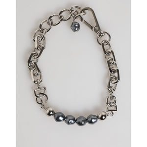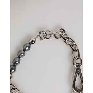 • Dolce & Gabbana Silver Tone Chain Lobster Clasp Logo Gray Pearls Bracelet