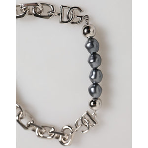 Dolce & Gabbana Silver Tone Chain Lobster Clasp Logo Gray Pearls Bracelet