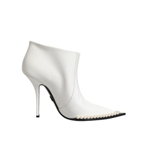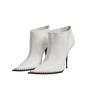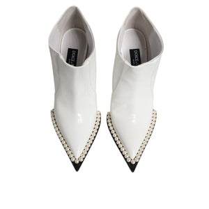 Dolce & Gabbana White Faux Pearl Leather Pointed Toe Ankle Boot Shoes