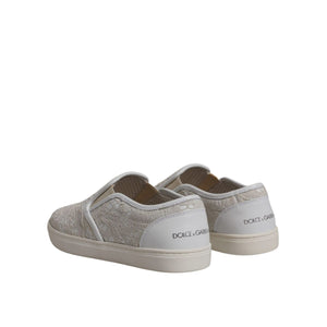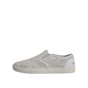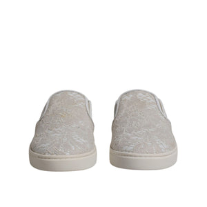 Dolce & Gabbana White Floral Lace Slip On Loafers Shoes