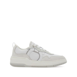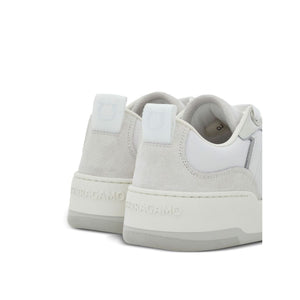 optical white leather Gancini print logo patch to the side suede panelling pull-tab at the heel embossed logo to the rear logo-debossed tongue round toe front lace-up fastening branded leather insole flat rubber sole Gancini leather sneakers Size and Fit - Our boutique offers the following fittings: M (medium) for sporty women shoes and C (wide) for classic women shoes. Do not hesitate to contact us to have more information.