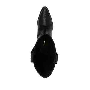 black calf leather smooth grain decorative stitching double pull-tab at the opening low stacked heel pointed toe branded leather insole rubber sole Wish Star leather boots Size and Fit - Heel 1,4 in / 3,5 cm