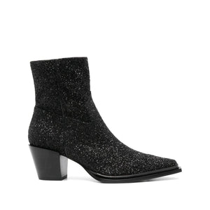 black glitter detailing Western style ankle-length side zip fastening pointed toe branded leather insole 60mm block heel rubber sole Cece Ab 60 glittered boots Size and Fit - Heel 2,4 in / 6 cm
