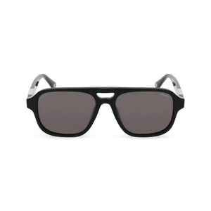 • Alt Tag: POLICE MOD. SPLL83 unisex acetate sunglasses, front view with black frames and dark lenses.